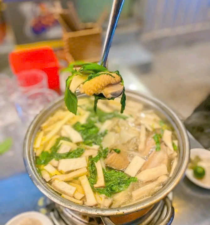 Gà quán dùng là gà ta thả vườn, nhập trong ngày, nên khi nấu lên thịt giữ độ dai vừa phải, da giòn và ngọt tự nhiên. Phần nước dùng được ninh từ xương gà ta nhiều giờ nên vị ngọt thanh, không gắt vị gia vị công nghiệp.