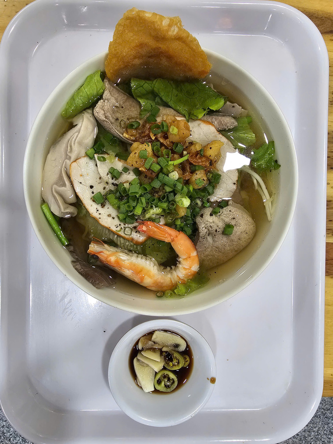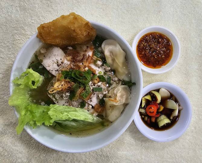 Mỗi tô mì hay hủ tiếu ở đây đều được chuẩn bị kỹ lưỡng, nước dùng ninh từ xương ống tạo vị ngọt tự nhiên, không gắt, giúp thực khách cảm nhận rõ nét sự tinh tế trong từng muỗng nước.